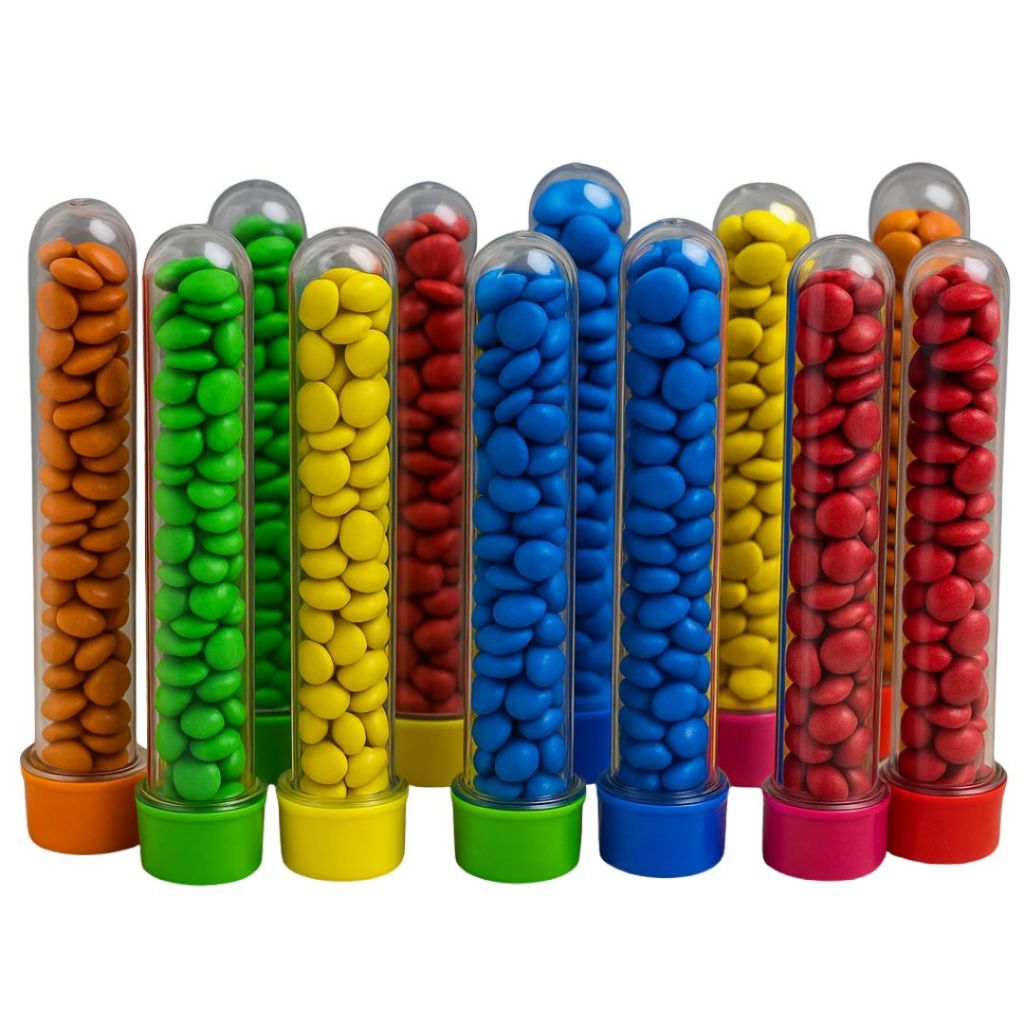 KIT 30 TUBETES LEMBRANCINHA 13CM ACRÍLICO - PARA DECORAÇÃO, FESTA DE CRIANÇA (CHOCO)