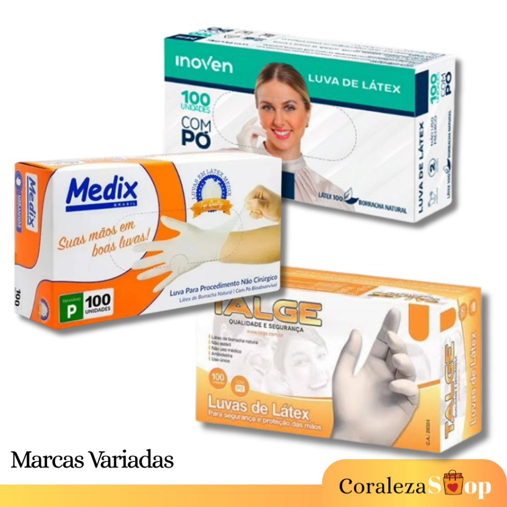 Luva de Látex com Pó – Caixa com 100 Unidades – Tamanhos PP, P, M ou G Luva descartável de látex com pó, ideal para uso em atividades que exigem proteção, higiene e sensibilidade ao toque. Indicada para uso profissional ou doméstico, como limpeza, estética, saúde, manipulação de alimentos e muito mais. Características do produto: Material: Látex natural Com pó (facilita o calçamento) Uso único (descartável) Ambidestra (serve em ambas as mãos) Excelente elasticidade e conforto Ótima sensibilidade tátil Tamanhos disponíveis: PP, P, M ou G (selecione o tamanho desejado no momento da compra) Conteúdo da embalagem: 3 caixa com 100 unidades cada. Indicação de uso: Recomendada para quem busca uma luva prática, resistente e confortável para tarefas do dia a dia ou uso profissional. Não indicada para pessoas com alergia ao látex.