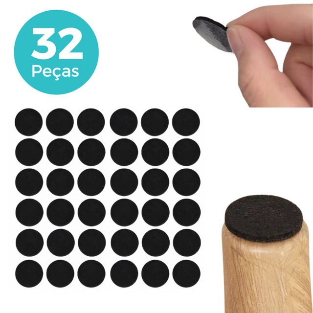 Kit 32 Protetor Redondo Feltro EVA Auto Adesivo Colante Pé Sofá Cadeira Mesa Para Não Riscar Piso