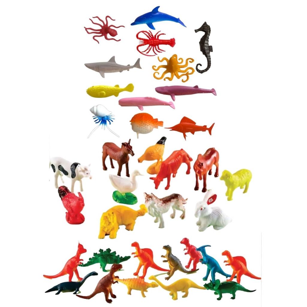 Kit 36 Animais Da Fazenda Marinho Dinossauro Brinquedo Cenário Faz de Conta Infantil Dutoys