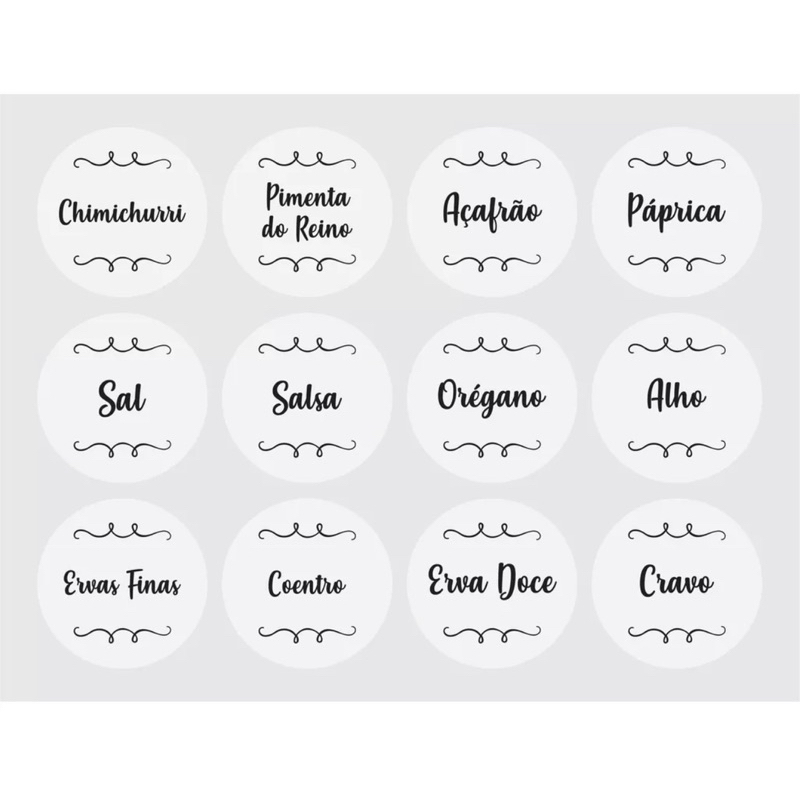 Kit 36 ETIQUETAS ADESIVAS LOUSA NO VINIL TRANSPARENTE COM RECORTE REDONDO PARA CONDIMENTOS 3,8x3,8cm