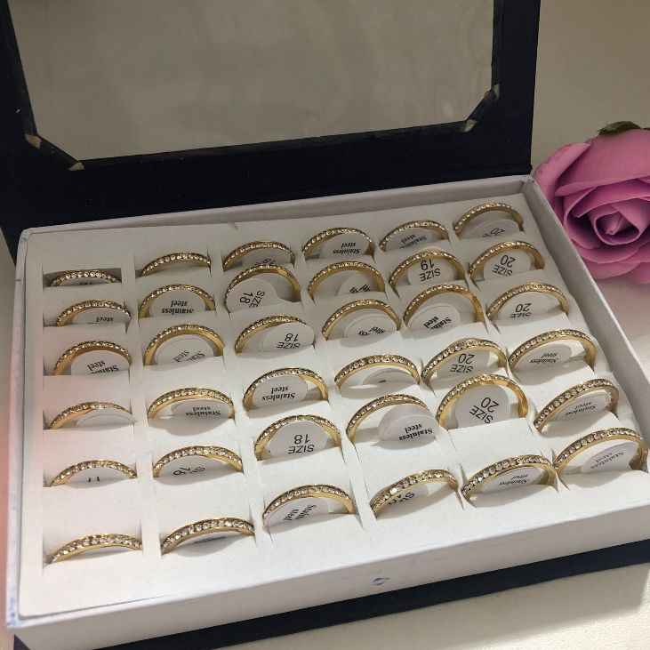 Kit 36 Unidades Anel em Aço inox prateado em strass /anel antialergico