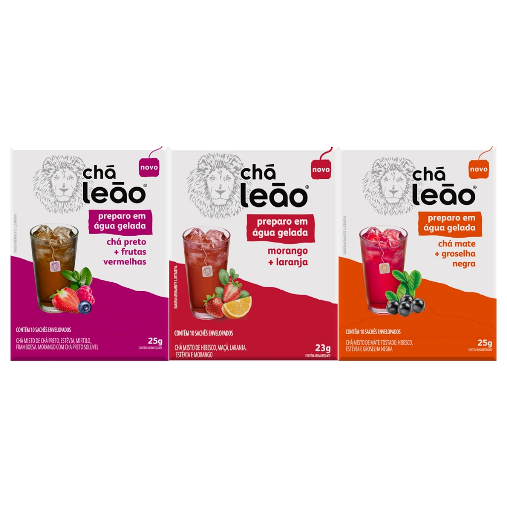 Chá Leão Preparo em Água Gelada, uma Inovação no mercado brasileiro que a Leão trás para seu portfólio. Seja para refrescar os dias quentes ou te acompanhar por onde você estiver, a linha de Preparo em Água Gelada é uma ótima opção. Temos diversos sabores, feitos para infusão a frio. Experimente também quente, fica ótimo. #FicadeBoa com Leão CONTÊM: - Uma (01) Caixa de Chá Preto e Frutas Vermelhas 10 Sachês. - Uma (01) Caixa de Chá Mate Com Groselha Negra 10 Sachês. - Uma (01) Caixa de Chá Leão Água Gelada - Morango E Laranja 10 Sachês. ESPECIFICAÇÕES: - Sabor: Chá Preto e Frutas Vermelhas, Mate com Groselha Negra, Morango e Laranja. - Aplicação: Chá em água Gelada - Embalagem: Cada sachê é embalado individualmente, 2,5g cada. - Não possui quantidade significativa de valor energético, carboidratos, proteínas, gorduras totais, gorduras saturadas, gorduras trans, fibra alimentar e sódio. - Fabricante: Leão Alimentos e Bebidas LTDA. - Origem: PR/Brasil. ALÉRGICO: - NÃO CONTÉM: Glúten MODO DE PREPARO: - Coloque 1 (Um) Sachê em 300mL de água gelada. - Aguarde 5 minutos já está pronto! - Já está pronto! Se quiser adoce. - Se quiser experimentar com água quente também fica ótimo ;) INFORMAÇÕES IMPORTANTES: - Conservar ao abrigo do Sol e Calor em local limpo, seco, arejado e sem odor. - Produto sujeito a variação de suas características, devido à presença de ingredientes naturais. - Utilize água filtrada. - Usar a quantidade indicada de água é importante para garantir uma melhor experiência. - As imagens dos produtos e/ou seus componentes são meramente ilustrativos, exceto quando indicado o contrário no próprio anúncio.