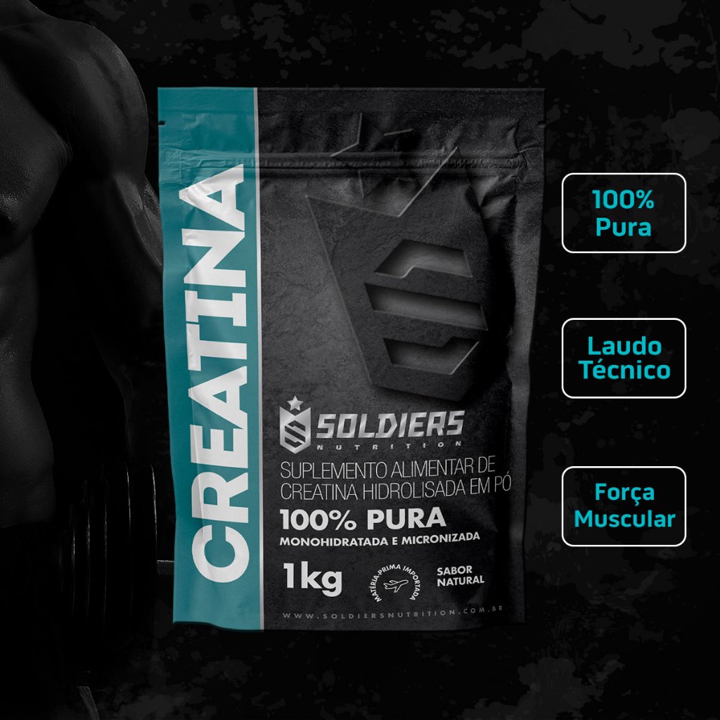 Kit: 3Kg Creatina Monohidratada - 100% Pura Importada - Soldiers Nutrition Acompanha Colher Dosadora 3g BENEFÍCIOS DA CREATINA: - Aumenta a capacidade do músculo de gerar força; - Aumento de massa magra; - Aumento da capacidade de treinamento; - Previne o catabolismo muscular. O QUE É? A creatina é um derivado de aminoácidos obtida através da dieta de síntese por nosso próprio organismo. Ela está presente essencialmente no músculo e auxilia na manutenção dos níveis de energia durante períodos breves de exercício intenso. Ou seja, sua função é crucial nos treinos com muito peso na busca pelo ganho de massa. QUANTO TOMAR/MELHOR HORÁRIO PARA CONSUMO O suplemento de creatina apresenta seus benefícios através de uso crônico, após iniciado o consumo ela deve ser ingerida todos os dias, levarão alguns dias até que os benefícios possam ser observados na sua totalidade. creatina é insulinodependente, isso significa que é preciso consumi-la junto com alimentos/suplementos que influenciem a produção de insulina. A lista de itens que possui este efeito envolve carboidratos de alto índice glicêmico como dextrose, maltodextrina, arroz, pão, macarrão e proteínas de alto índice insulinêmico como leite e whey protein. A sugestão de consumo determinada pela ANVISA é de 3gr ao dia. Não existe consenso entre pesquisadores sobre o melhor horário para consumo, existem evidencias que apontam para maiores benefícios quando consumida na refeição pré-treino, assim como também existem evidencias para melhores benefícios quando consumida junto com a refeição pós-treino. Modo de Preparo: Diluir 3g (1 colher dosadora) da creatina em 200ml de água ou bebida de sua preferência. Consumir uma porção ao dia ou conforme recomendação do nutricionista ou médico. SOMOS FABRICANTES, PRODUTO DIRETO DA FÁBRICA PARA VOCÊ COM TOTAL GARANTIA DE QUALIDADE ANVISA: Registro ISENTO conforme resolução RDC 27 de 06 de agosto de 2010 anexo I. Registro ISENTO conforme resolução RDC 240/2018.