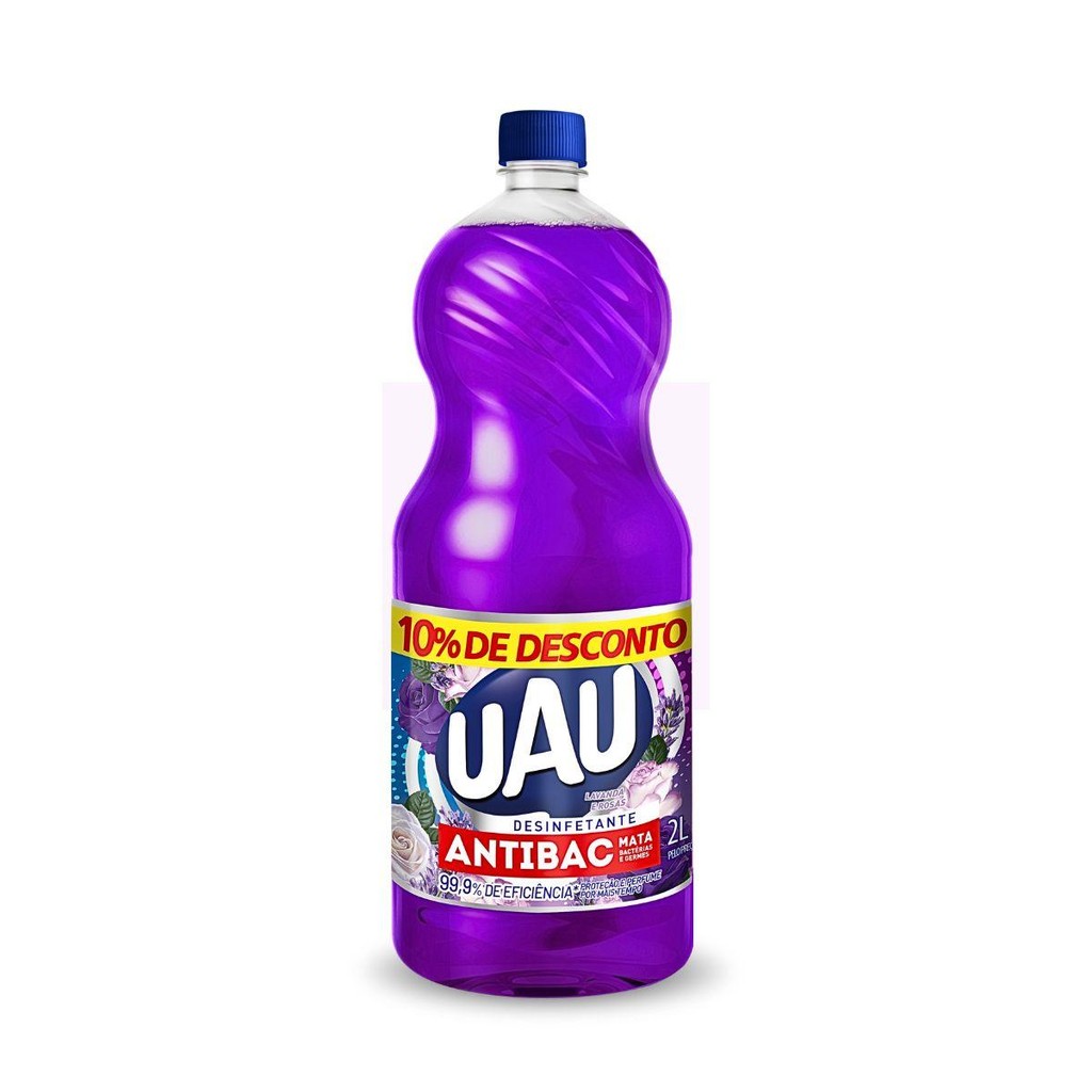 Kit com 3 Desinfetantes Antibactericida UAU Lavanda e Rosas 2l (Totalizando 6 Litros) Sua casa perfumadamente protegida! Limpeza eficiente Mata 99,9% dos germes e bactérias Toque de perfume UAU. O Desinfetante UAU Antibactericida Lavanda e Rosas possui fórmula balanceada com ativos antimicrobianos e um toque de perfume sofisticado que cuida e protege o ambiente. Aí é só curtir os momentos com casa protegida e perfumada.