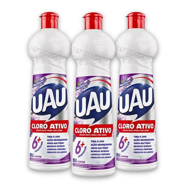 | Kit 3un Limpador Multiuso 500ml Cloro Ativo Lavanda 5 Em 1 Uau este produto | R$ 27,16 | — | 4.8/5 | 50 |