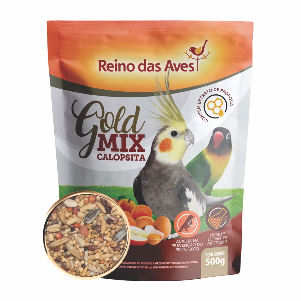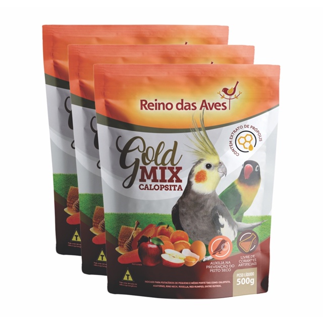 Kit 3un Racao Para Calopsita Gold Mix 500g Reino Das Aves