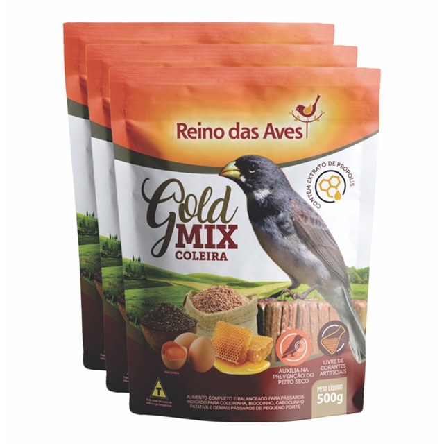 Kit 3un Ração para COLEIRA GOLD MIX 500g - Reino das aves