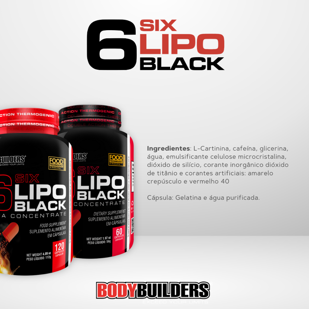 🔥 Termogênico 6 Six Lipo Black Ultra Concentrate - Liberte Sua Melhor Versão! 🔥 Por que Escolher o Nosso Termogênico? 🚀 Ingredientes potentes. 💪 Mais disposição para treinos intensos e resultados visíveis. 🔥 Ação termogênica. 💊 Compostos concentrados para máxima eficácia. 🌿 Mistura especial de compostos que aceleram o metabolismo. Benefícios Incríveis dos Suplementos Termogênicos: ⚡ Fornece uma explosão de energia rápida. 🏋️♂️ Ideal para treinos intensos e focados. 🕰️ Solução fácil para integração na sua rotina diária.