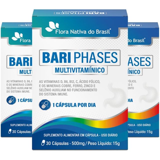 KIT 3X Bari Phases Multivitamínico 30 cápsulas - Flora Nativa
