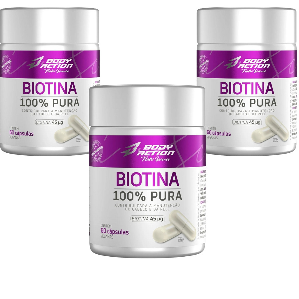 Kit 3x Biotina 100% Pura Pote 180 Cápsulas Bodyaction