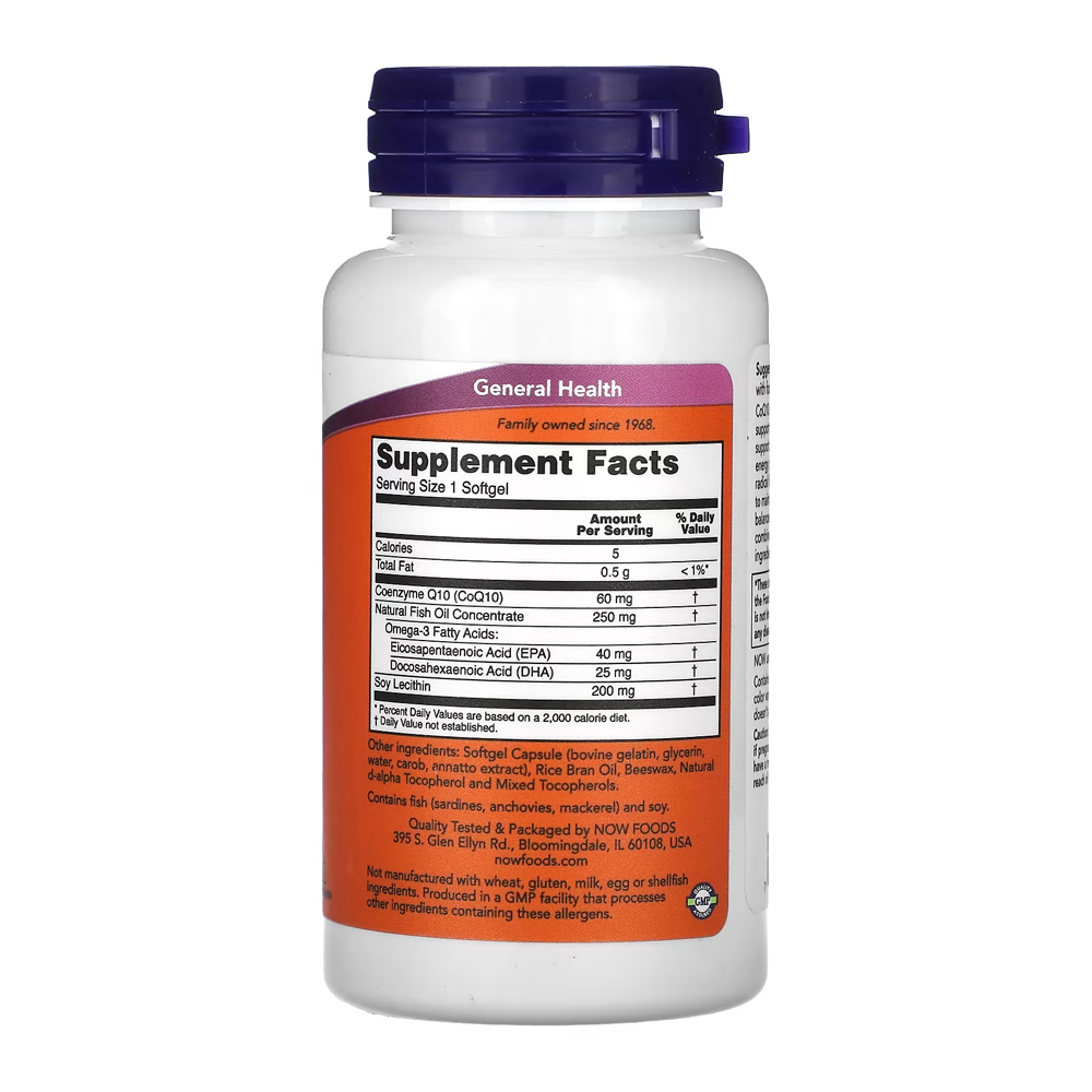 Kit 3x Coenzima CoQ10 60mg e Omega-3 Now Foods 60Soft Importado/Made in Usa