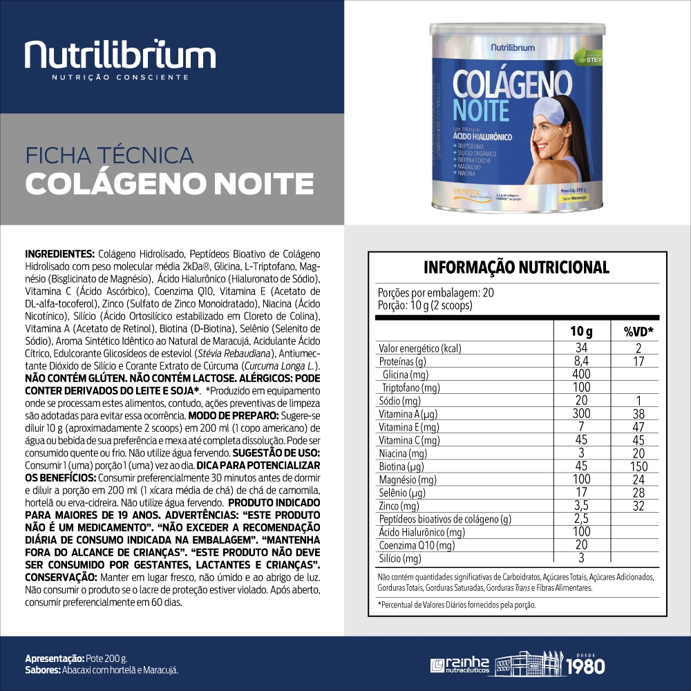 Kit 3x Colágeno Verisol Com Magnésio Triptofano Noite 200g Nutrilibrium