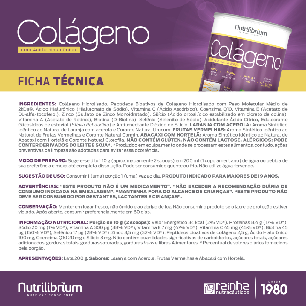 ESTE KIT POSSUI: - 1x Colágeno Verisol 200g Frutas Vermelhas 200g Nutrilibrium - 1x Colágeno Verisol Noite Abacaxi com Hortelã 200g Nutrilibrium - 1x Colágeno Verisol Thermo Lift Laranja c/ Acerola 200g Nutrilibrium ______________________________________________________ Uma nutrição equilibrada tem um papel muito importante na qualidade de vida. Com o ritmo acelerado de muitas pessoas, às vezes, é muito difícil prestar atenção a todos os requisitos que o corpo precisa para estar saudável e forte. Neste sentido, os suplementos cumprem a função de complementar a alimentação e ajudam a obter as vitaminas, minerais, proteínas e outros componentes indispensáveis para o correto funcionamento do organismo. *Este produto é um suplemento dietético, não é um medicamento. Suplementa Ante dietas insuficientes. Consulte seu médico e / ou farmacêutico.