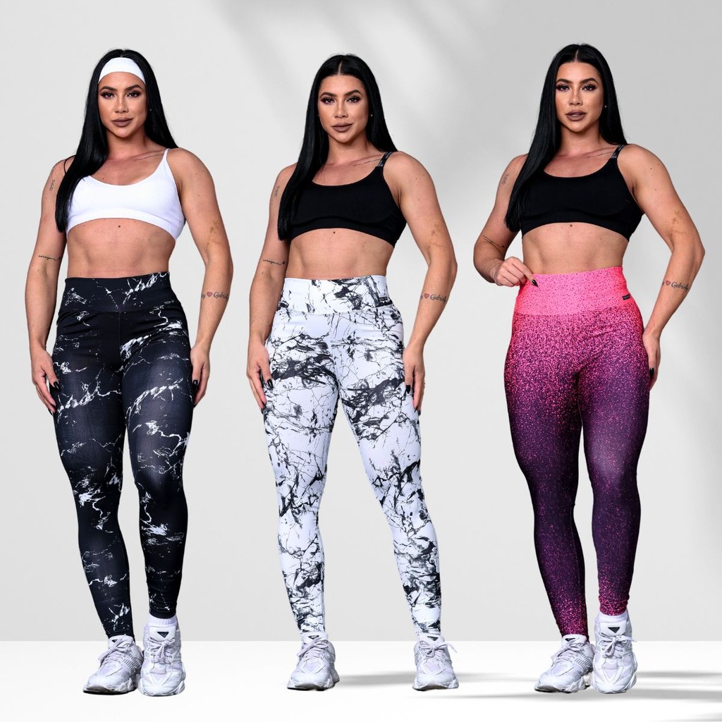 Kit 3x Legging Feminina Corrida Grossa Cintura Alta Leg Fitness Academia Suplex Levanta Bumbum Degrade + Brinde