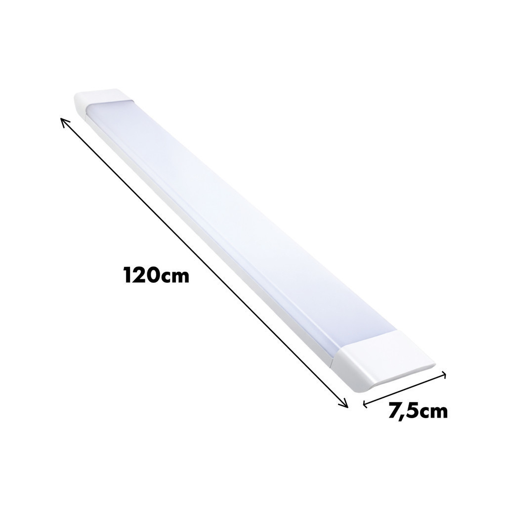 💡 KIT 3x LUMINÁRIA LED SLIM PLUS 80W *(1,2m - 3000K/6500K - Alto Rendimento)* 📏 DIMENSÕES E DESIGN: ✔️ Comprimento: 1,2 metros lineares ✔️ Largura: 75mm (Perfil Slim Moderno) ✔️ Peso: 140g (Leve e Resistente) 🎨 TEMPERATURAS DE COR: ✔️ 6500K (Branco Frio - Iluminação Intensa) ⚙️ ESPECIFICAÇÕES TÉCNICAS: • Potência: 80W • Tensão: 100-250V (Bivolt Automático) • Fluxo Luminoso: 2.400 Lúmens • Ângulo de Abertura: 160° (Iluminação Ampla) • IRC: >80 (Excelente Reprodução de Cores) • Fator de Potência: >0,5 • Vida Útil: 30.000 horas 🛠️ INSTALAÇÃO VERSÁTIL: ▸ Fixação Direta (parafusos inclusos) ▸ Suspensão por Cabos (opcional) 🏢 APLICAÇÕES PROFISSIONAIS: ▸ Lojas de Varejo e Supermercados ▸ Escritórios e Salas de Reunião ▸ Cozinhas Industriais ▸ Galpões Comerciais ✅ VANTAGENS: • Alto Rendimento (30lm/W) • Design Ultra Slim (integrável a projetos) • Longa Durabilidade (30.000h)