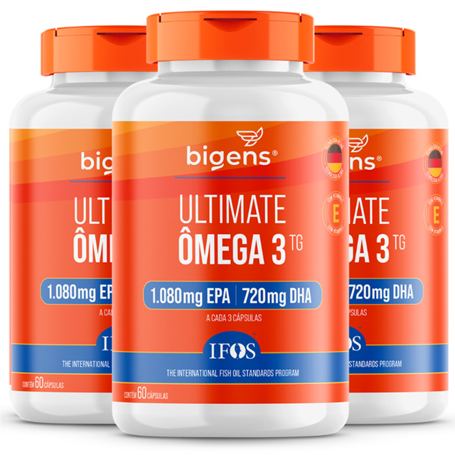 Kit 3x Ultimate Ômega 3 TG, Selo IFOS, 1.080mg EPA + 720mg DHA, 60 caps, Bigens
