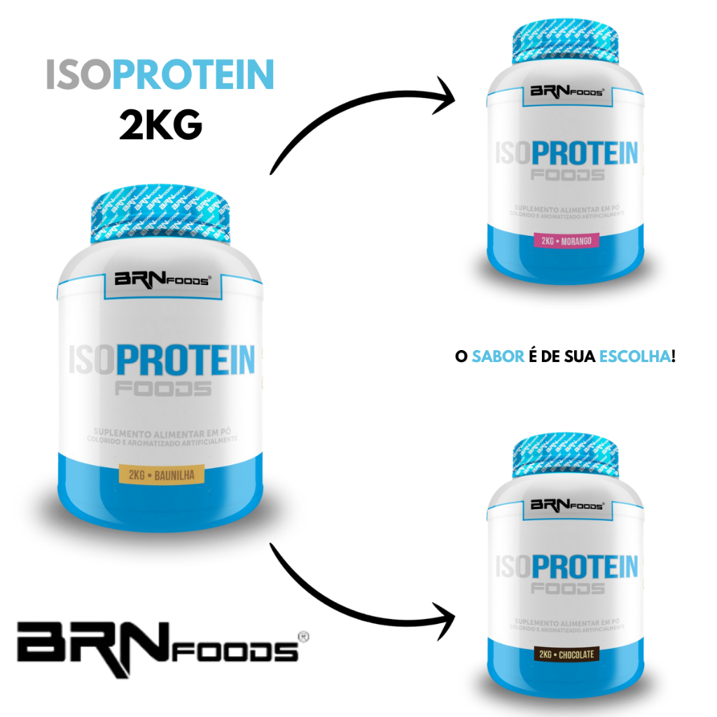 Whey Protein Iso Protein Foods – BRN Foods O Whey Protein Iso Protein Foods da BRN Foods é um suplemento alimentar em pó formulado à base de proteínas isoladas, indicado para atletas e praticantes de atividade física que utilizam a suplementação proteica como parte da rotina alimentar. Sua composição utiliza proteínas de alta pureza e rápida digestão, característica típica das proteínas isoladas, permitindo uma absorção eficiente pelo organismo. A formulação foi desenvolvida para atender dietas com maior exigência proteica, mantendo baixo teor de gorduras e carboidratos. A tabela nutricional apresenta 48 g de proteínas por porção, contribuindo de forma significativa para a ingestão diária de proteínas dentro de uma dieta equilibrada. Disponível em diferentes sabores, com variação de ingredientes conforme o sabor escolhido. Ingredientes Baunilha: Proteína isolada do soro do leite, proteína isolada da soja, colágeno hidrolisado, proteína hidrolisada do trigo, aromatizantes, espessante goma xantana, antiumectante e edulcorante sucralose. Chocolate: Proteína isolada do soro do leite, proteína isolada da soja, colágeno hidrolisado, proteína hidrolisada do trigo, cacau em pó, aromatizantes, espessante goma xantana, antiumectante, edulcorante sucralose e corante caramelo. Morango: Proteína isolada do soro do leite, proteína isolada da soja, colágeno hidrolisado, proteína hidrolisada do trigo, aromatizantes, espessante goma xantana, antiumectante, edulcorante sucralose e corante allura AC. Avisos • Este produto não é um medicamento. • Não exceder a recomendação diária de consumo indicada na embalagem. • Manter fora do alcance de crianças. • Este produto não deve ser consumido por gestantes, lactantes e crianças. • Consumir preferencialmente sob orientação de nutricionista ou médico.