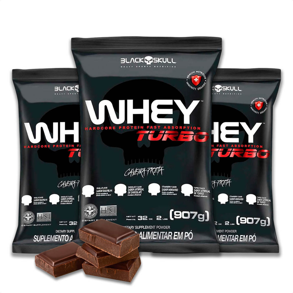 Kit 3x Whey Turbo Black Skull Refil - 907g
