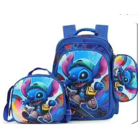 Kit 3x1 Mochila Escolar 3d Lancheira Estojo Personagens
