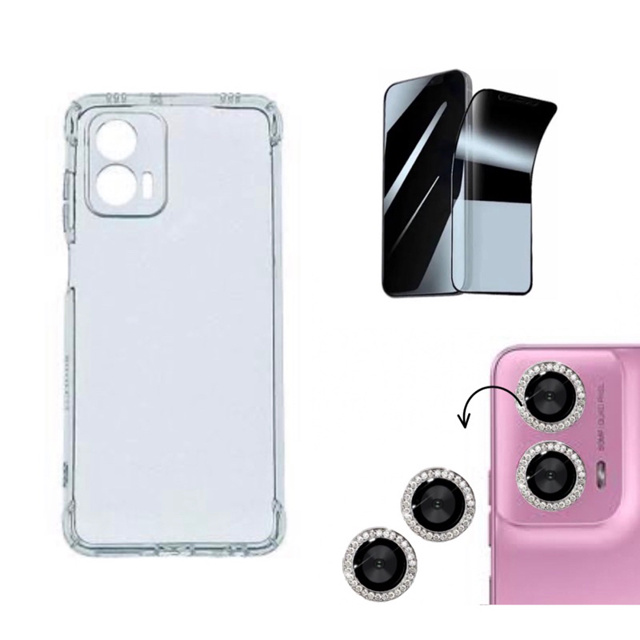 Kit 3X1 Motorola Moto- G24 Película CERÂMICA PRIVACIDADE 9D + Capa + Pelicula de Câmera com Brilho