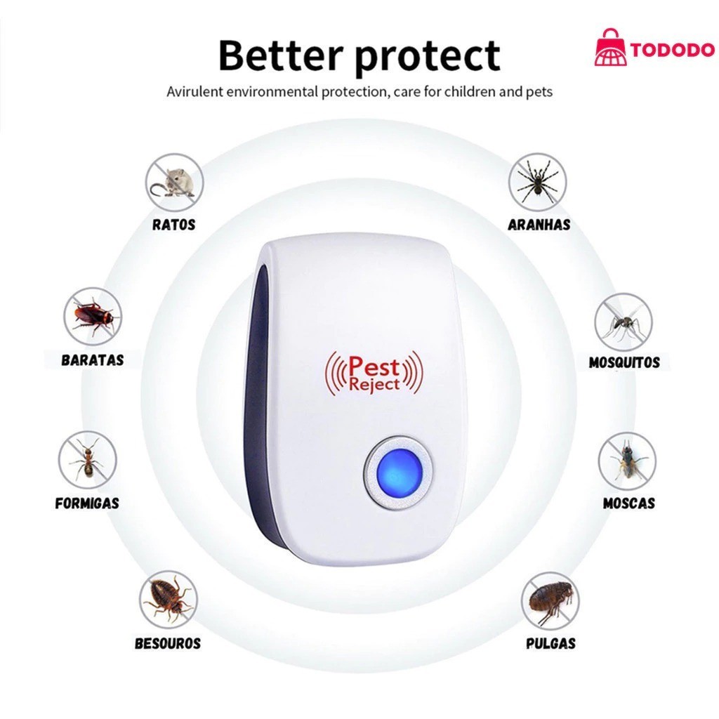 KIT 4/3/2/1 Repelente Eletrônico Ultrassônico Mosca Pernilongos Baratas Morcegos repele e Espanta Ratos bivolt