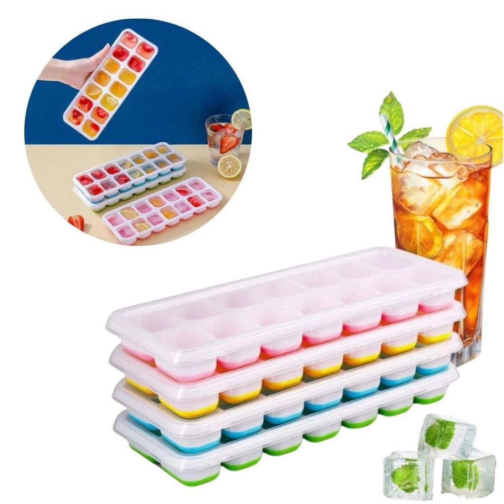 Kit 4/3/2 Peças Forma De Gelo Fundo Retangular 14 Cubos Sem Tampa em Silicone Livre de BPA