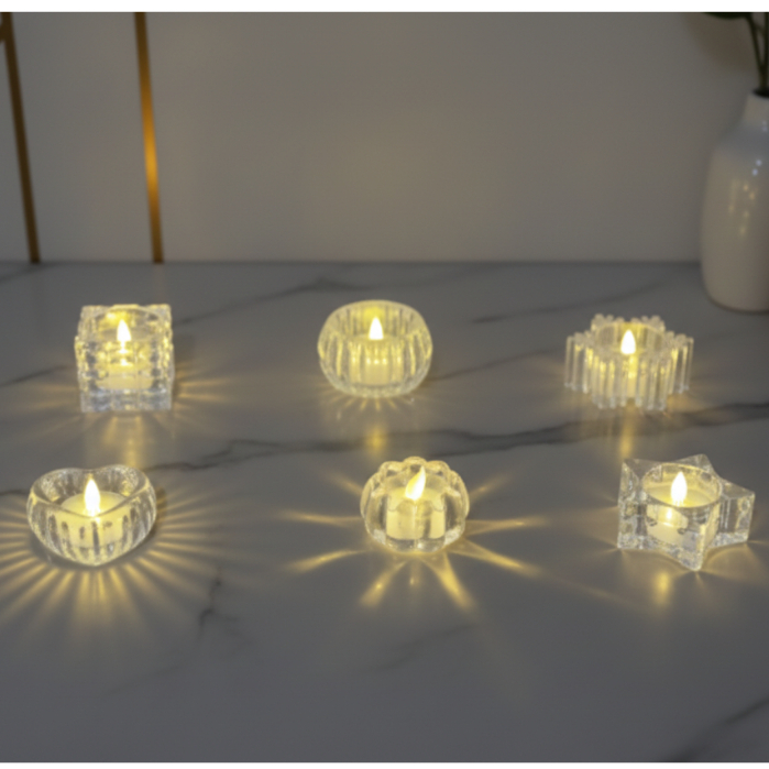 Kit 4/6/10 Castiçal com Vela Led Acrílico Decoração Casa Lembrancinha