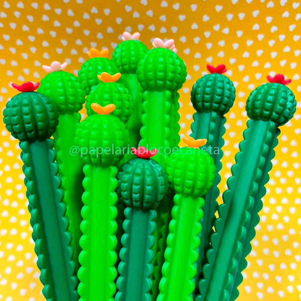 Kit 4/6/12 Canetas Cacto Cute Florzinha Colorida Kawaii Papelaria Criativa