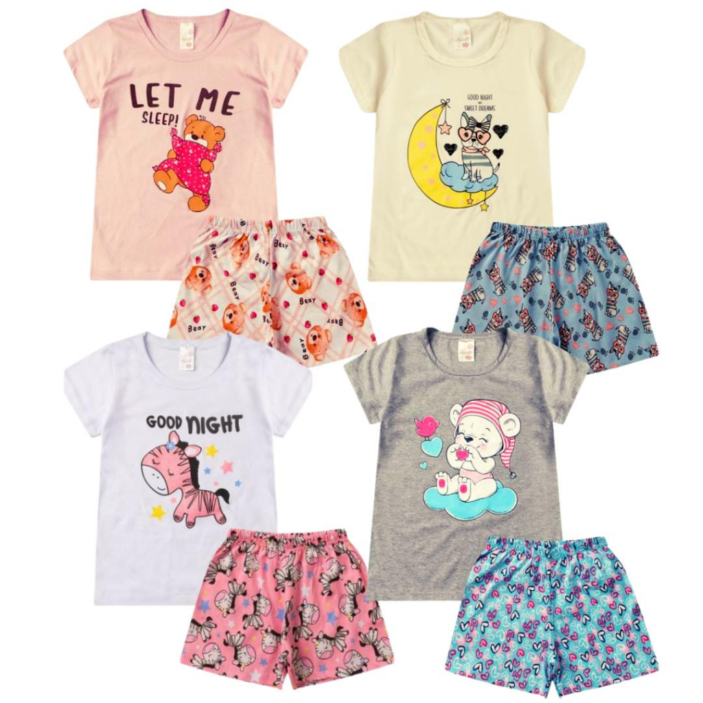 👧✨ Kit Pijama Infantil Menina 4, 6 ou 8 peças – Brilha no Escuro ✨👕 Deixe as noites da sua pequena muito mais divertidas e confortáveis! 🌙 Nosso kit é perfeito para quem busca pijama infantil menina, roupa infantil menina e até mesmo roupa de bebê menina com qualidade, economia e estilo. Você pode escolher entre 4, 6 ou 8 peças. O kit inclui: 4 Peças ✔ 2 camisetas em algodão ✔ 2 bermudas/shorts lisos ou estampados em algodão 6 Peças ✔ 3 camisetas em algodão ✔ 3 bermudas/shorts lisos ou estampados em algodão 8 Peças ✔ 4 camisetas em algodão ✔ 4 bermudas/shorts lisos ou estampados em algodão ✅ Super confortável e leve, ideal para dormir bem. ✅ Estampas divertidas que brilham no escuro 🌟. ✅ Ótimo custo-benefício: mais peças por menos! ✅ Envio rápido em até 24h 📦. ⚠️ Atenção: os kits são sortidos, sem opção de escolha de estampas, cores ou modelos. As peças podem ser diferentes das fotos, mas sempre com a mesma qualidade, conforto e beleza! ✨ Um produto essencial para o guarda-roupa das pequenas, unindo praticidade, estilo e diversão na hora do soninho!