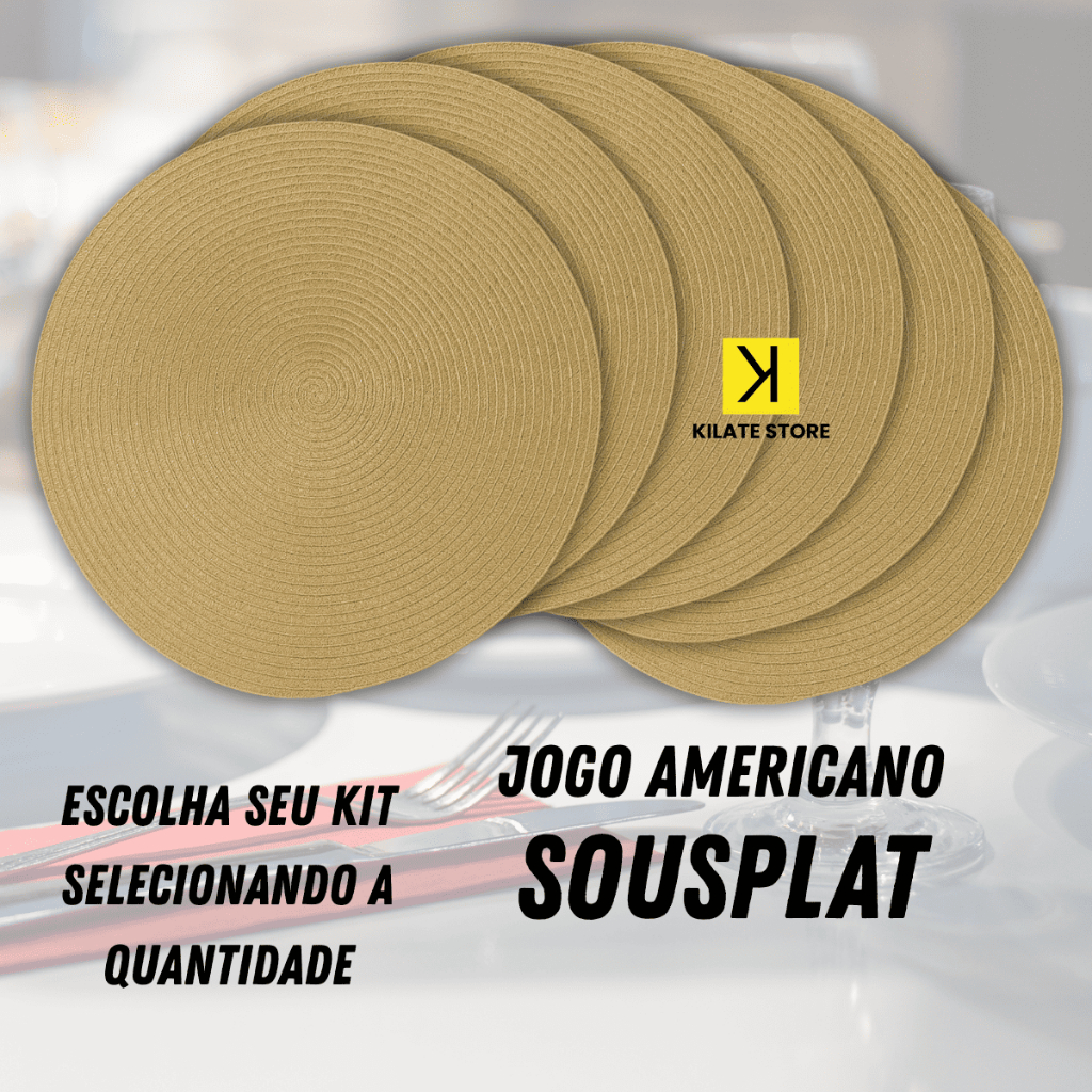 TODOS OS NOSSO PRODUTOS ACOMPANHAM NOTA FISCAL *TODOS OS PRODUTOS DISPONÍVEIS COM ENVIO IMEDIATO! *CASO TIVER ALGUMA DÚVIDA SOBRE A QUANTIDADE NOS PERGUNTE Descrição do Produto Transforme sua mesa em um ambiente sofisticado e acolhedor com o Jogo Americano Sousplat. Produzido em material resistente, com acabamento delicado e design moderno, ele é a escolha perfeita para quem busca unir praticidade, elegância e durabilidade em suas refeições. Seja para o dia a dia ou ocasiões especiais, esse acessório é ideal para proteger sua mesa, valorizar a decoração e oferecer uma experiência completa na hora de receber familiares e amigos. Características Formato: Redondo Diâmetro: 37 cm Design: Moderno e versátil Material: Resistente, fácil de limpar Cores neutras e elegantes, que combinam com diferentes estilos de louça e decoração Protege a mesa contra riscos, manchas e calor Itens Inclusos Kit com 4 unidades de Jogo Americano Sousplat Kit com 6 unidades de Jogo Americano Sousplat Kit com 8 unidades de Jogo Americano Sousplat (Escolha a opção desejada no momento da compra) Benefícios Dá um toque sofisticado à mesa posta Ideal para uso diário e também para recepções especiais Fácil manutenção – basta um pano úmido para a limpeza Combina com pratos, taças e talheres de diferentes estilos Versátil para almoço, jantar, café da manhã ou brunch Sobre a Kilate Store: O Grupo Kilate Store se dedica a oferecer a melhor experiência para você, com produtos de qualidade e atendimento personalizado.