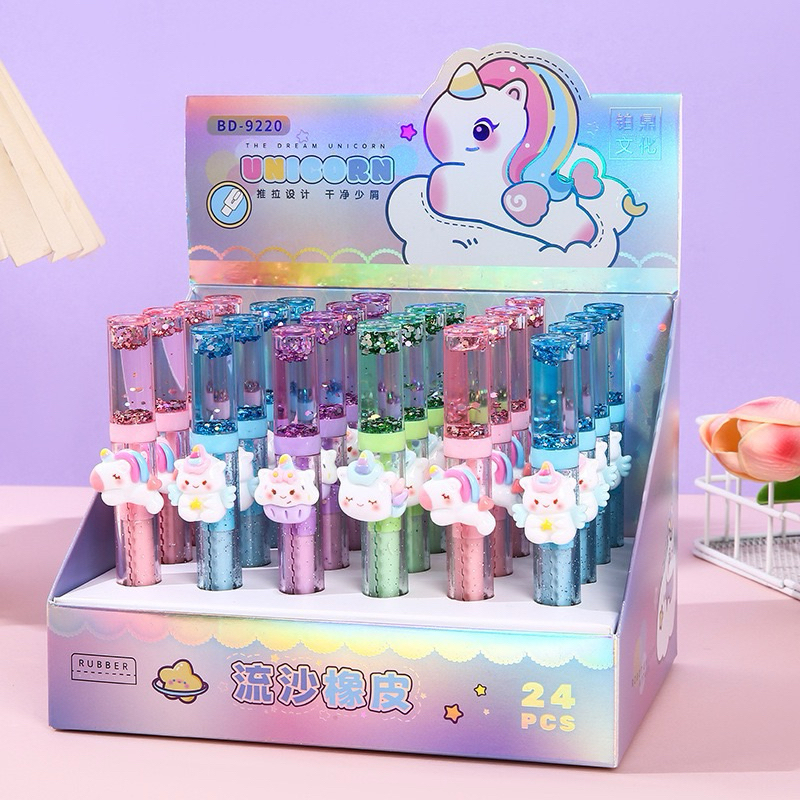 Kit 4/8/12 peças Borracha Escolar Retratil Sweep de Urso e Unicórnio e patinho