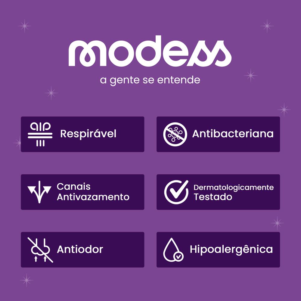Kit Contém: 4 Pacotes de Absorventes Modess Malha Suave com Abas 16un cada Oferecendo o equilíbrio perfeito entre proteção e conforto para as mulheres modernas! O absorvente Modess conta com uma cobertura suave e respirável, perfeito para fluxos menstruais leves e moderados, oferece uma excelente proteção contra vazamentos. Com sua tecnologia antibacteriana e antiodor, você pode se sentir fresca e confiante o dia todo. Testado dermatologicamente e hipoalergênico, este absorvente anatômico é gentil com a sua pele e proporciona um ajuste confortável, permitindo que você se mova com liberdade e sem preocupações. Sua cobertura suave oferece proteção e conforto e garantir sua satisfação em cada uso.