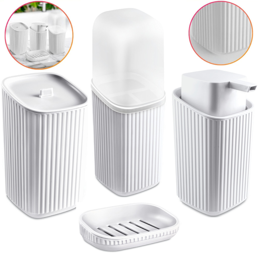 Kit 4 Acessórios Banheiro Porta Sabonete Líquido, Porta Algodão, Porta Escovas e Saboneteira Av
