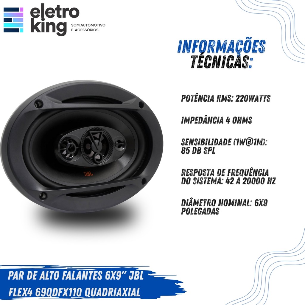 Kit 4 Alto Falantes 6x9 pol JBL FLEX4 69QDFX110 220W + Módulo Amplificador Taramos TS400x4