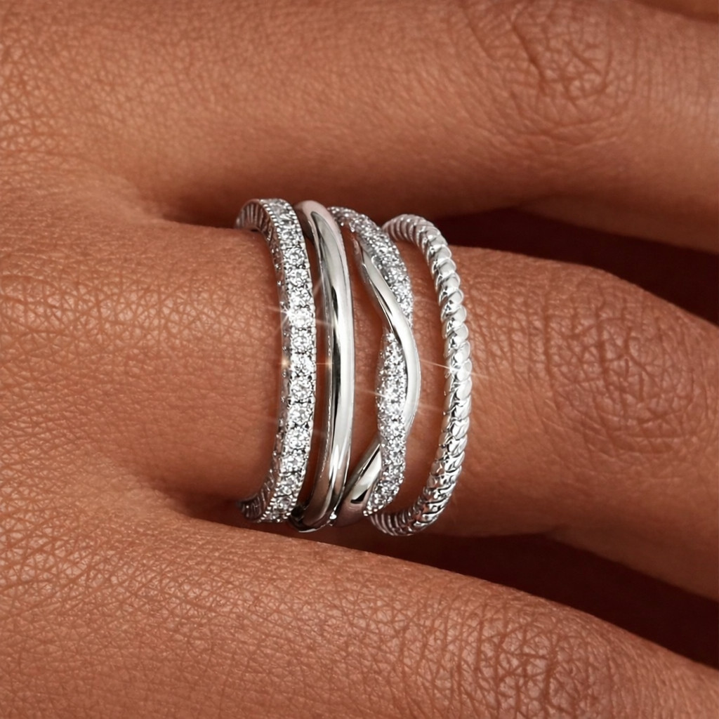 kit 4 anéis Feminino com Zircônias Brilhantes delicado Elegante em banhado a ouro 18k a Prata 925