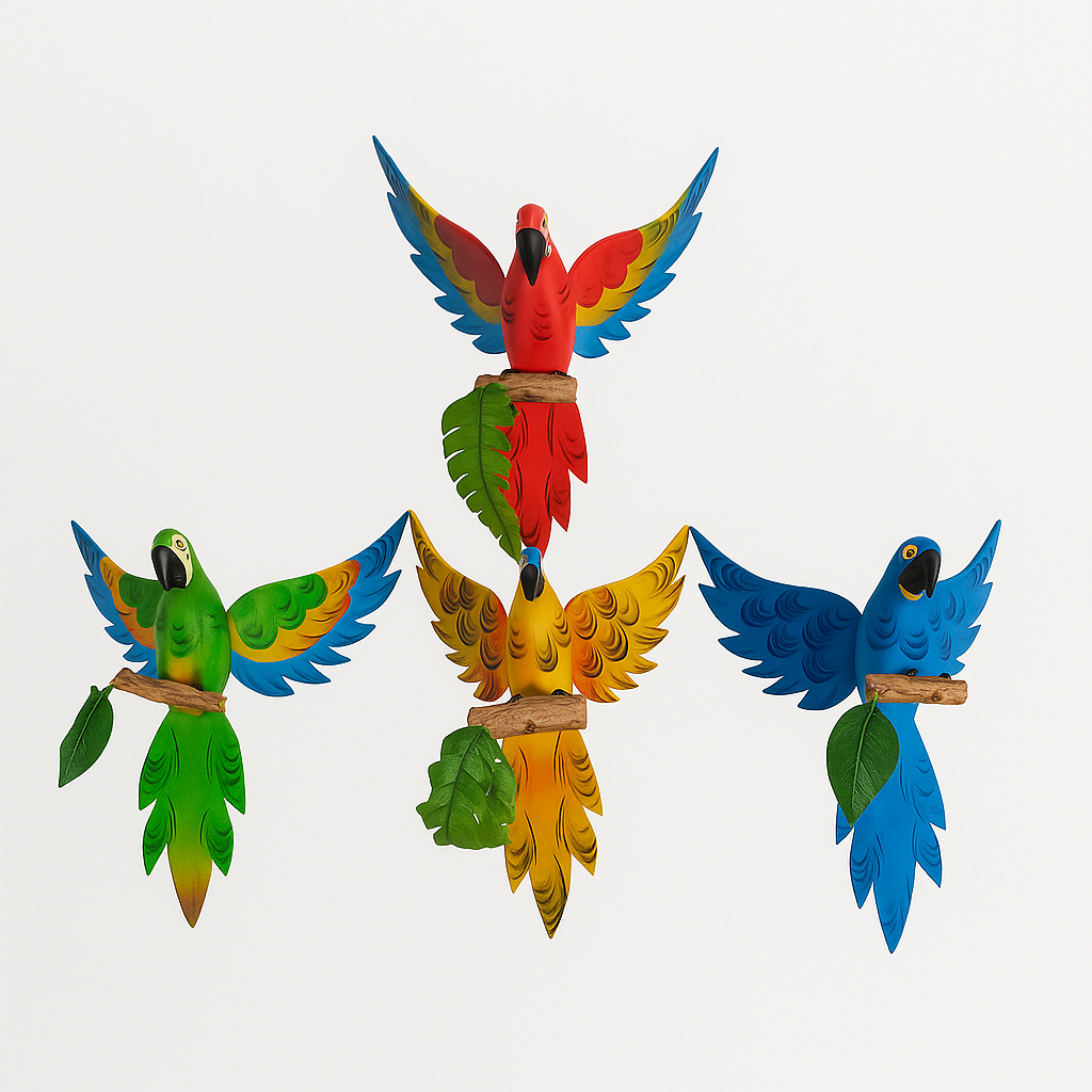 Kit 4 Araras com asa aberta no tronco de pendurar