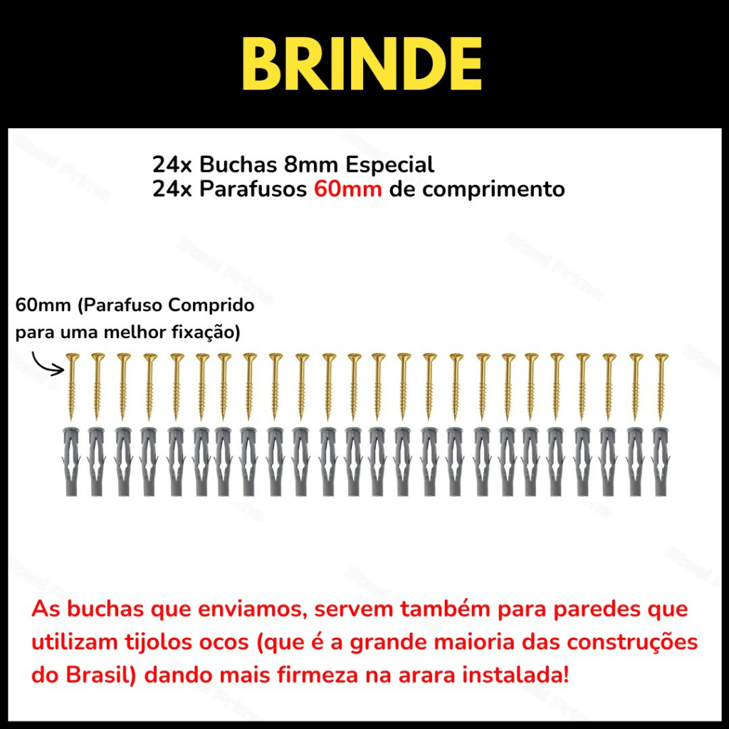 Apresentando a Arara Steel Prime: A Elegância e Robustez que seu Espaço Merece! À procura de uma solução sofisticada e confiável para organizar suas roupas? Apresentamos a Arara Steel Prime, a opção ideal para uso residencial e comercial. Com um design moderno e construção robusta, nossa arara é projetada para atender às suas necessidades com excelência. 4X ARARAS STEEL PRIME •Medidas: Comprimento 1metro Largura 30cm •Tubo 7/8 •Espessura da parede do tudo 0.90mm •Pintura eletrostática •Suporte que vai na parede cortado a laser, 9cm de comprimento e 3cm de largura SUPER BRINDE: 24X Parafusos de 8mm 24x Buchas de 8mm que também são utilizadas em tijolo oco, dando mais firmeza na hora da instalação Vantagens e Características: •Material de Alta Qualidade: A Arara Steel Prime é fabricada em aço 1020 com tubo 7/8 e espessura de parede do tubo de 0.90mm. Isso garante durabilidade, firmeza e confiabilidade inigualáveis. •Pintura Eletrostática: A pintura eletrostática confere não apenas uma aparência moderna, mas também protege a arara contra desgaste, mantendo-a com aspecto novo por mais tempo. •Dimensões Ideais: Com um comprimento de 100cm e uma largura de 30cm, a Arara Steel Prime é perfeita para acomodar uma variedade de roupas, sem ocupar muito espaço em seu ambiente. •Fácil Instalação: Como um bônus, enviamos buchas de 8mm e parafusos de 8mm de excelente qualidade, tornando a instalação um processo simples e rápido. Nossas buchas são indicadas também para paredes com tijolo oco, comuns na maioria das construções no Brasil. Não compre araras sem bucha! •Suporte Sofisticado: O suporte de parede da Arara Steel Prime é uma peça cortada a laser, com cantos arredondados, que não apenas reforçam a estrutura, mas também conferem um toque de sofisticação ao seu ambiente. •Suporta até 50kg: A Arara Steel Prime é capaz de acomodar até 50kg de roupas, proporcionando um espaço de armazenamento confiável e resistente. •Fotos Reais do Produto: As imagens do anúncio são fotos reais da Arara Steel Prime, garantindo que você receba exatamente o que está vendo. •Diferencial da Espessura: Diferentemente da concorrência, nosso tubo possui uma espessura de parede de 0.90mm, o que a torna mais firme, robusta e durável. Compare e veja a diferença através das fotos no anúncio! A Arara Steel Prime é a escolha perfeita para quem busca qualidade, durabilidade e elegância em uma única peça. Não deixe sua decisão para depois, leve a sofisticação para seu espaço com a Arara Steel Prime hoje mesmo! Invista em Qualidade e Estilo com a Arara Steel Prime! Garanta já a sua e transforme seu espaço de forma elegante e eficiente!