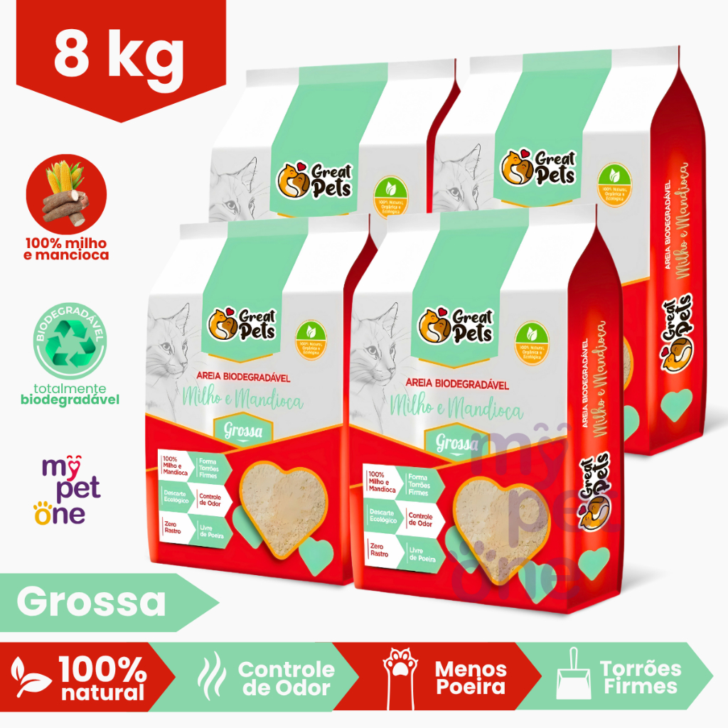 Kit 4 Areia Biodegradável Grossa 2 Kg para Gatos - Great Pets