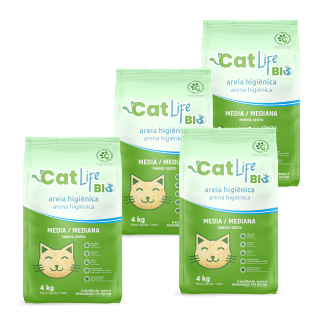 Kit 4 Areias Higiênica Cat Life Bio Grãos Médios para Gatos 4 kg