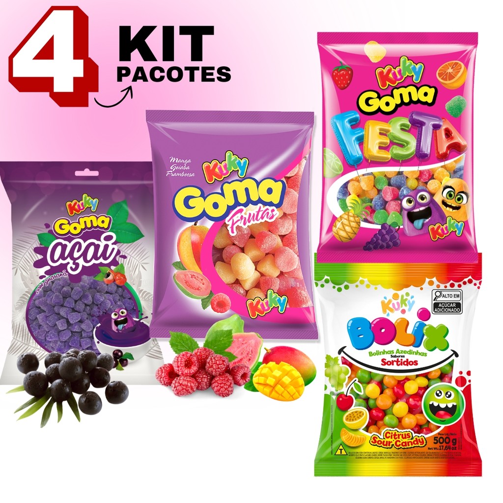 Kit 4 Bala De Goma Sino Sortida - Fruta - Açai - Bolix Doce Kuky