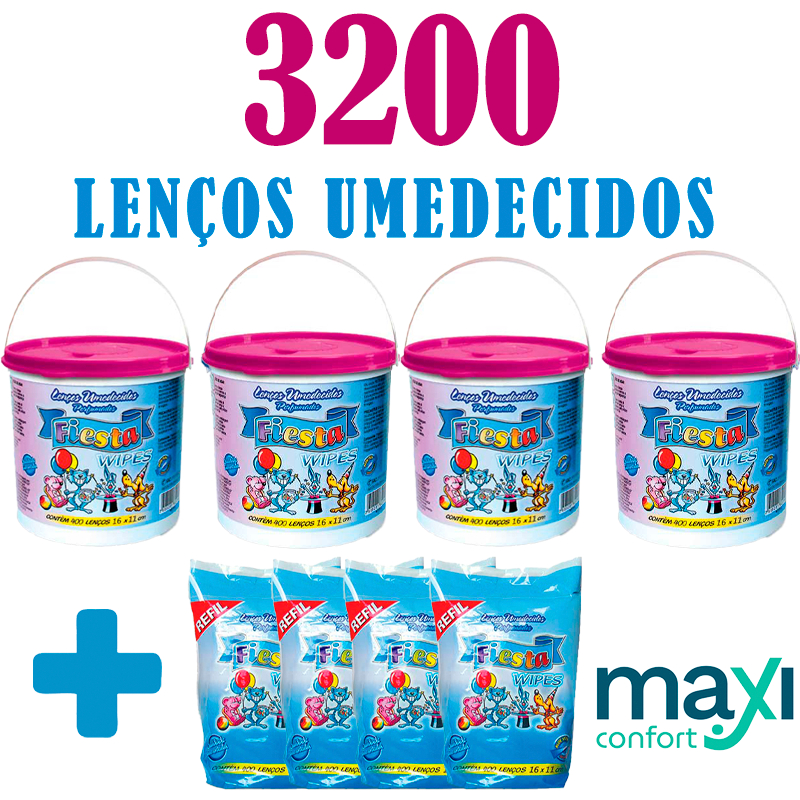 Kit 4 Baldes Lenços Umedecidos Fiesta + 4 Refil (3200 Lenços)