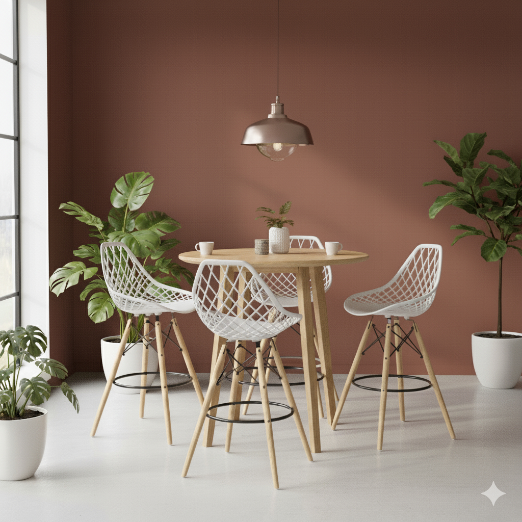 Banqueta Kaila com Pés de Madeira – Design Contemporâneo, Conforto e Resistência para sua Bancada A Banqueta Kaila é uma peça moderna e cheia de personalidade, perfeita para trazer elegância e funcionalidade a cozinhas, bancadas, áreas gourmet e espaços de convivência. Seu assento vazado em polipropileno, com design envolvente e linhas marcantes, oferece leveza visual e uma estética atual que valoriza qualquer ambiente. O assento ergonômico proporciona conforto mesmo durante longos períodos de uso, enquanto a base em madeira natural com ferragens metálicas cruzadas garante estabilidade, durabilidade e um toque sofisticado ao conjunto. O apoio para os pés em aço pintado acrescenta praticidade e segurança, tornando a experiência ainda mais confortável no dia a dia. Fabricada no Brasil, a Banqueta Kaila une beleza, resistência e funcionalidade em um design contemporâneo pensado para quem deseja compor ambientes modernos com charme e autenticidade. Diferenciais da Banqueta Kaila Design moderno com assento vazado em polipropileno Encosto ergonômico que garante conforto e boa postura Estrutura reforçada com pés de madeira e ferragens metálicas cruzadas Apoio para os pés em aço, proporcionando mais segurança e comodidade Produto 100% fabricado no Brasil Ideal para cozinhas, áreas gourmet, bancadas e espaços de convivência Especificações Técnicas Modelo: Kaila Material do assento: Polipropileno Base: Madeira com estrutura metálica aramada Altura total: 107 cm Largura: 55 cm Profundidade: 54 cm Altura do assento: 70 cm Peso suportado: até 110 kg Uso recomendado: Interno (ambientes cobertos) Garantia: 90 dias Leve para o seu ambiente a Banqueta Kaila — uma peça que combina elegância, resistência e conforto, ideal para quem busca um design contemporâneo que transforma cada detalhe do espaço.