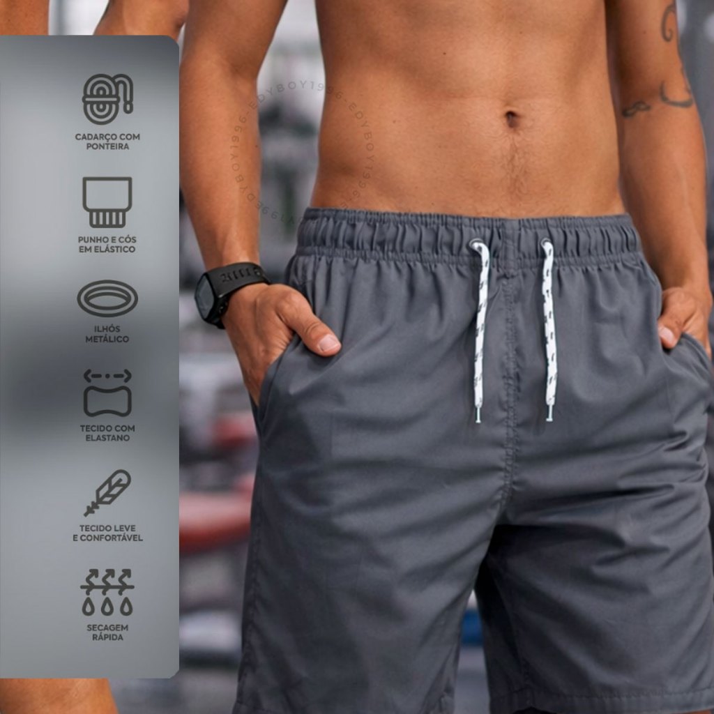 KIT 4 Bermuda Tactel Shorts Masculino Básico Liso Academia Cadarço Cordão Praia Mauricinho P XG