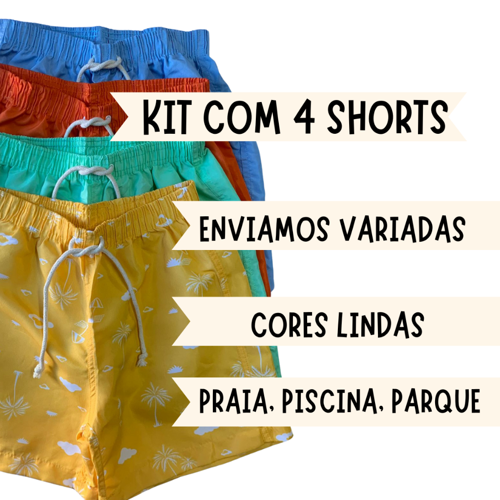 Kit 4 Bermudas Short Tactel Mauricinho Infantil Moda Praia Verão Menino