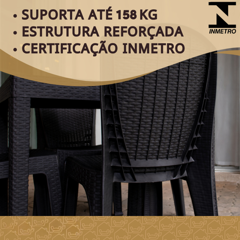 ✨ Kit com 04 Cadeiras Rattan – Conforto, Praticidade e Estilo para qualquer ambiente! ✨ ✔️ Durabilidade e segurança: cada cadeira suporta até 158 kg, garantindo resistência e uso diário sem preocupações. 🪑 Design moderno e elegante: acabamento em textura rattan que imita o trançado natural, proporcionando sofisticação e combinando com diferentes estilos de decoração – seja na sua casa, área gourmet ou até em ambientes comerciais. 📦 Praticidade total: 📚 Empilháveis – fáceis de guardar, otimizando espaço. 🧼 Fáceis de limpar – basta um pano úmido para manter sempre impecáveis. 🚚 Portáteis e leves – mova para qualquer ambiente com facilidade. 🌿 Versatilidade garantida: Ambientes internos: sala de jantar, cozinha, salão de festas, área gourmet. Ambientes externos: área da piscina, varanda, jardim, garagem, quintal. 📋 Especificações Técnicas: Material: Polipropileno injetado de alta resistência Estrutura: Anatômica Cores disponíveis: 🟤 Marrom Escuro | 🤎 Camurça | ⚫ Preto Capacidade máxima: 158 kg por cadeira Kit: 04 unidades 🌟 Benefícios principais: resistentes, empilháveis, fáceis de transportar, práticas, leves e com design que valoriza a decoração de qualquer espaço.