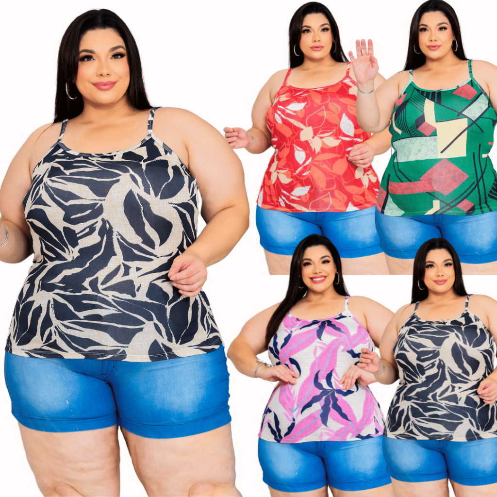 Kit 4 Blusa Regata Alcinha M ao G3 Plus Size Casual Feminino Atacado