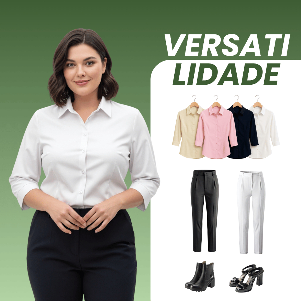Kit 4 Blusa Social Feminina Manga 3/4 - Entrega Rápida Plus Size