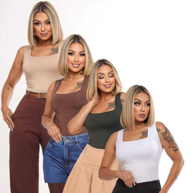 KIT 4 Blusas Femininas Regata Decote Quadrado Forro duplo Suplex Alça larga Blusa Estilosa