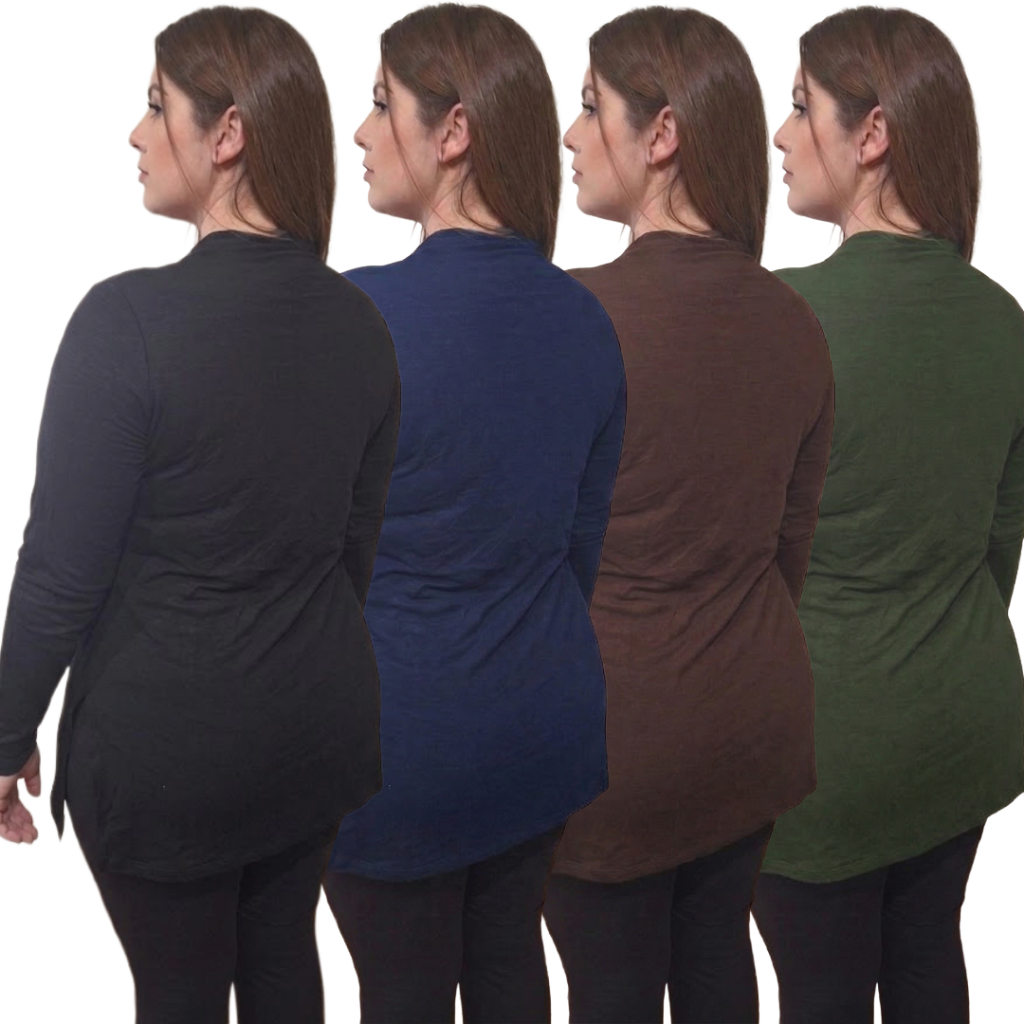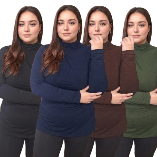 Kit 4 Blusas Plus Size Vest Legging Manga Longa Gola Alta Cacharel Tapa Bumbum